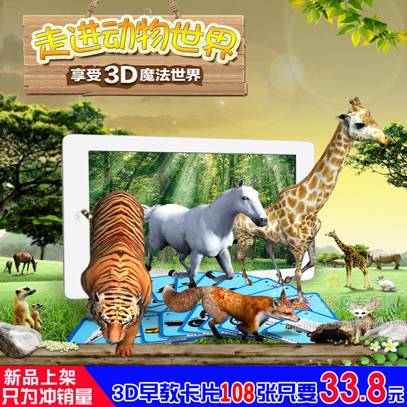 (Daily special) 3D three-dimensional toys Infant Children early education smart card 108 AR card Six one gift