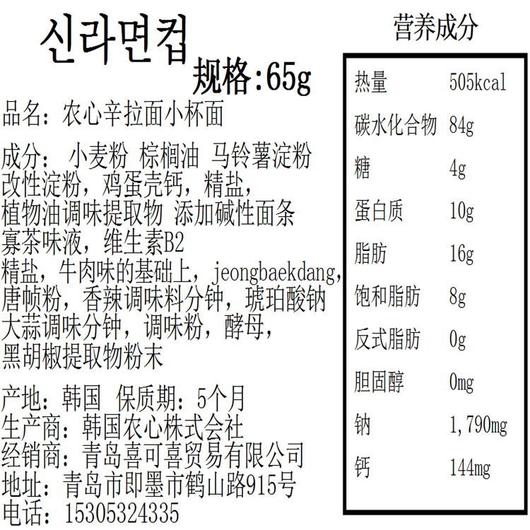 Korean Nongshim Xin Ramen small cup noodles Korean instant noodles barrel 65g