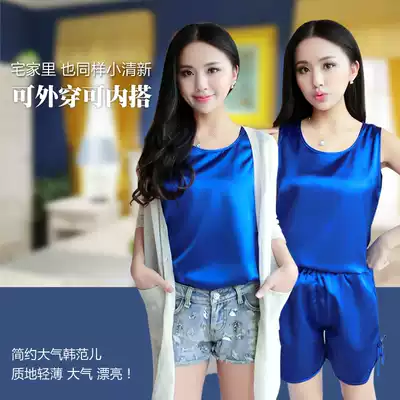 Pajamas women Summer sexy short-sleeved shorts two-piece set fresh Ice Silk thin spring and autumn Korean version of home clothing Silk