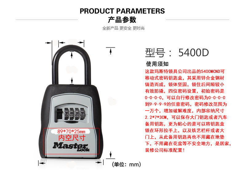 MASTER LOCK Master Lock Password Key Box Installation Key Storage Box 5400D