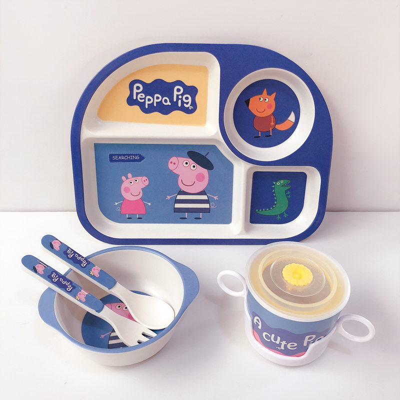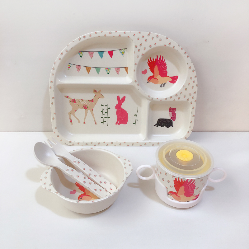Orange Kerr baby non-staple food bamboo fiber tableware baby plate children divider set bowl fork spoon cup invoice