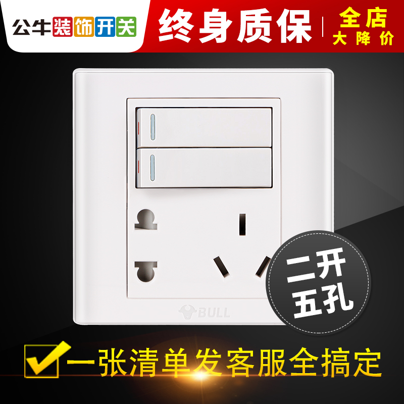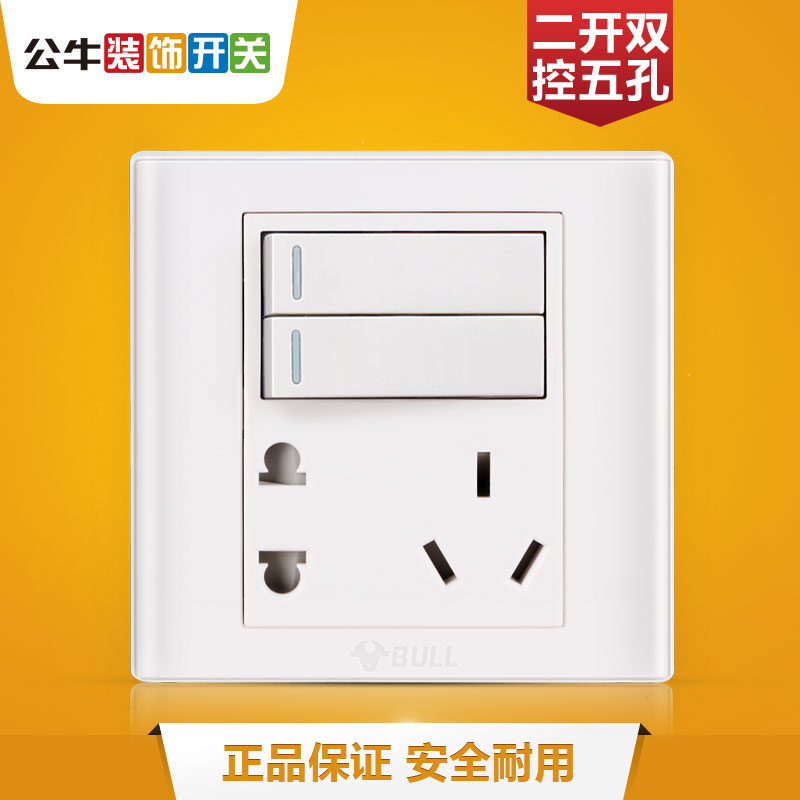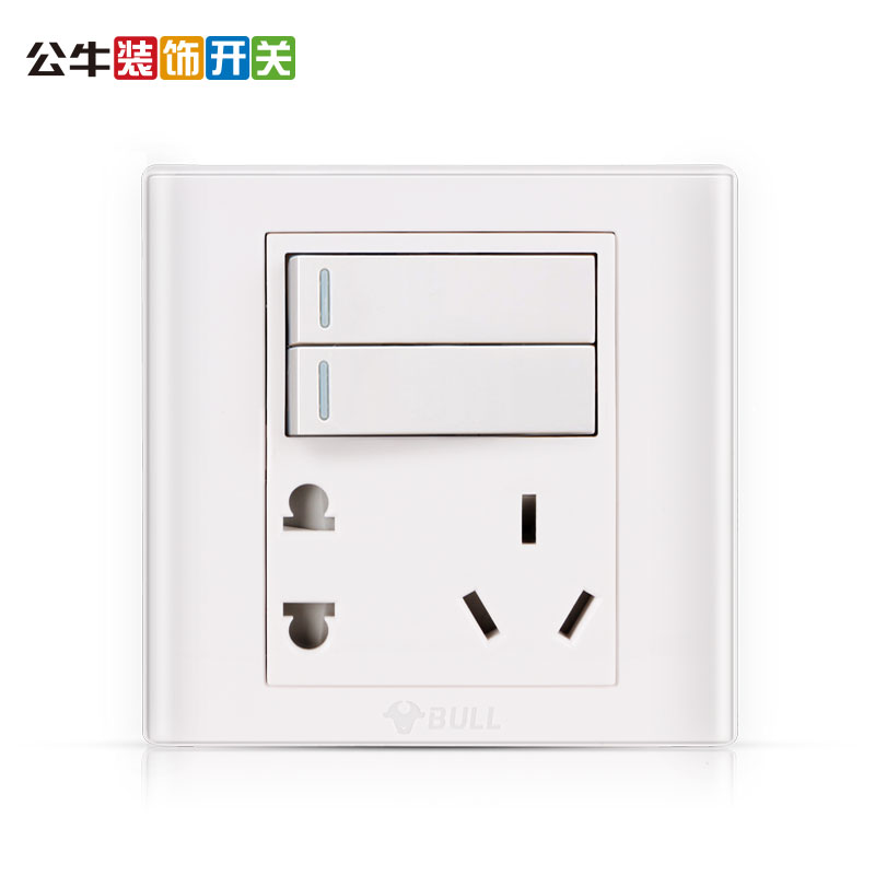 Bull 86 type switch double cut two open two three five hole socket 10A with double cut panel 5 hole wall concealed household
