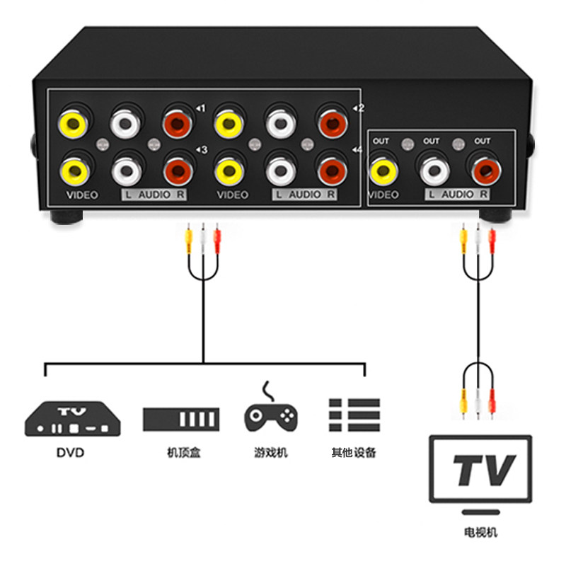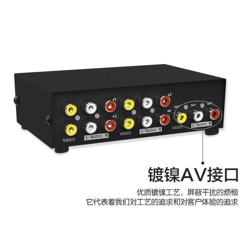 Da and steady AV switcher four in one out audio and video converter 3rca tri-color switching TV audio video distributor