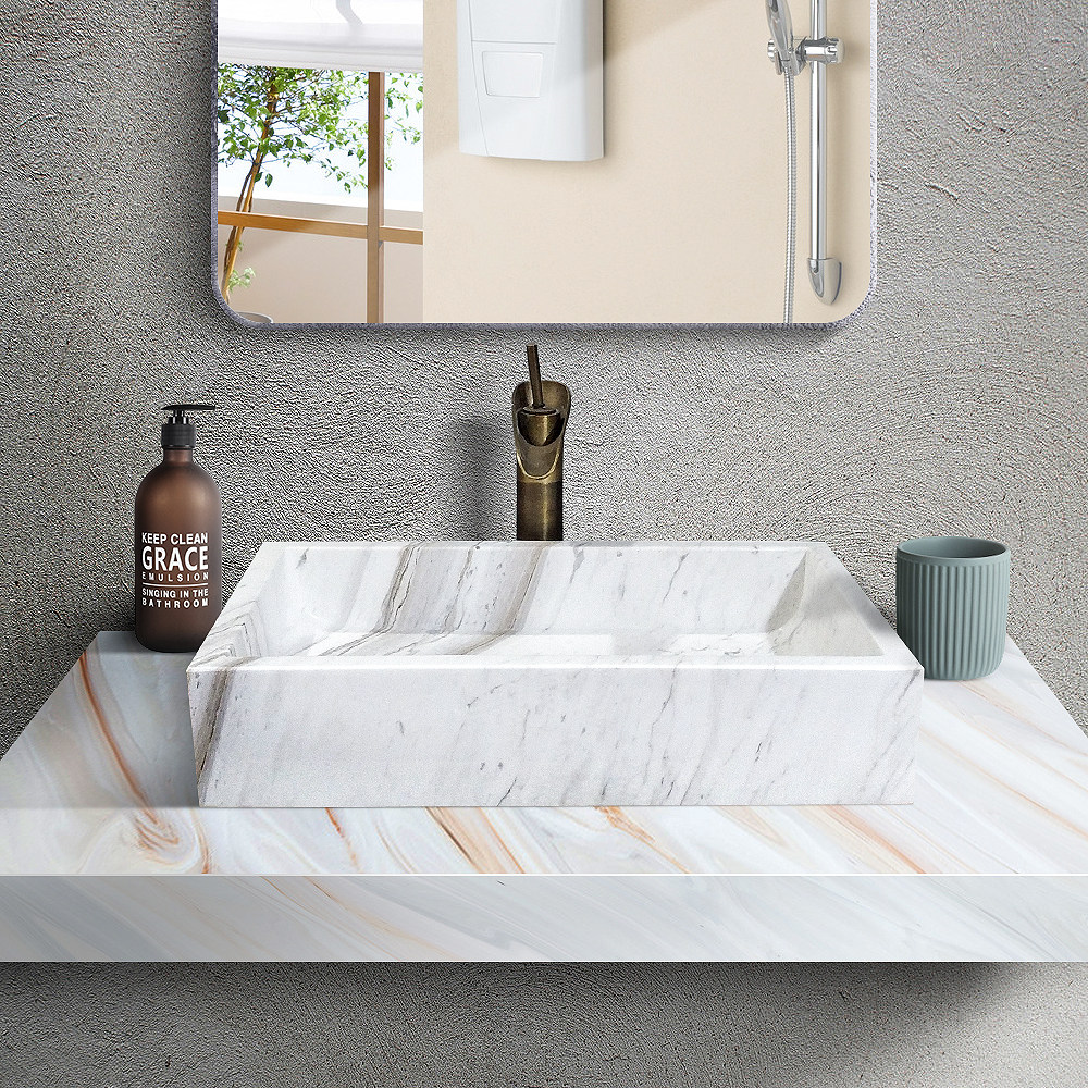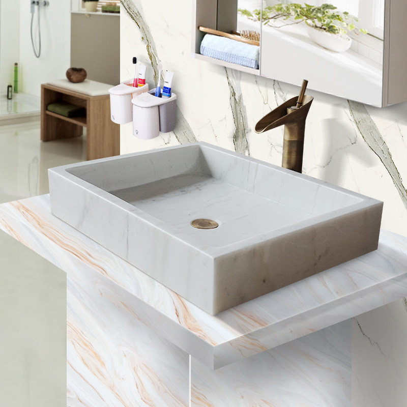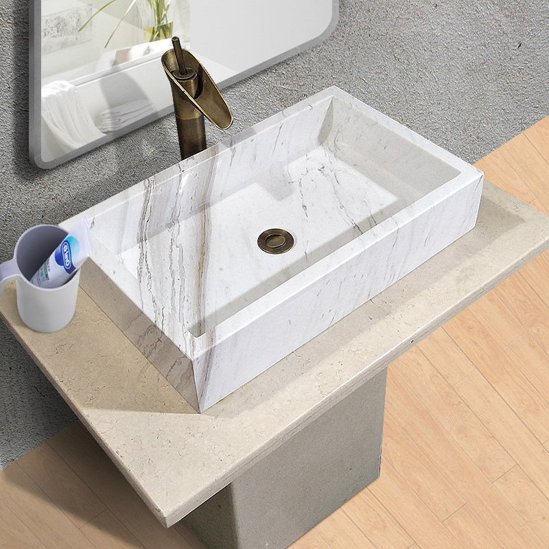 Custom natural marble integrated washbasin to deepen splash-proof stone bench pelvic makeup room art wash basin square
