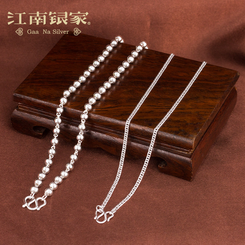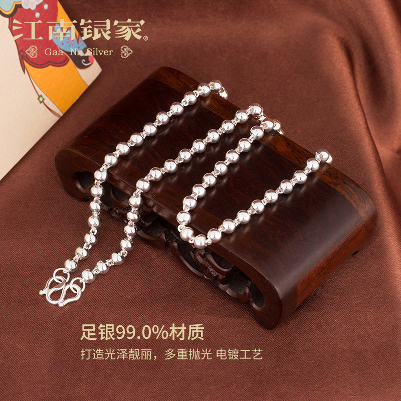 Jiangnan silver family 990 pure silver necklace with female snake bone chain round bead chain male baby silver decorated with child 100-day full moon gift-Taobao