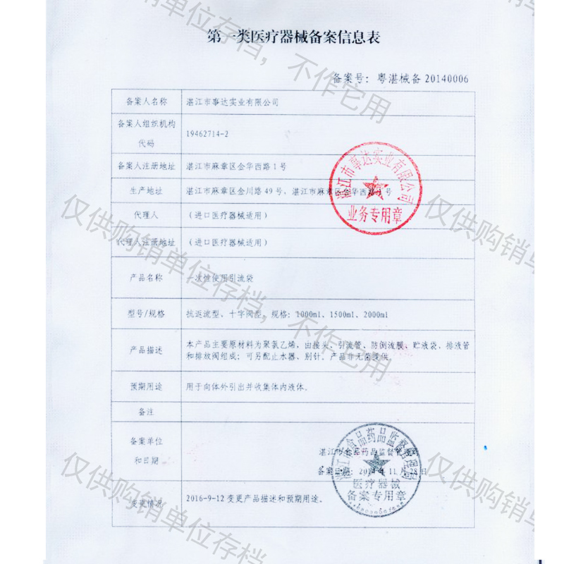 (1) matter Da drainage bag 1000ml (push-pull valve) anti-counter current) (1) matter Da drainage bag 1000ml (cross valve) anti-counter current) (1) matter Da drainage bag 2