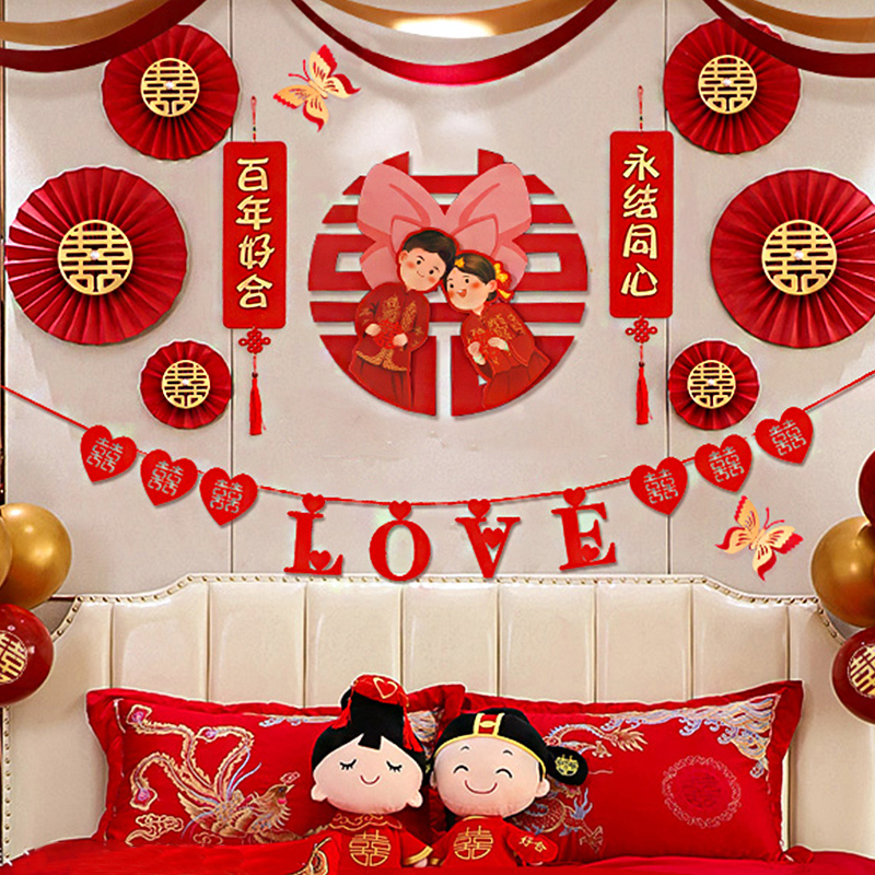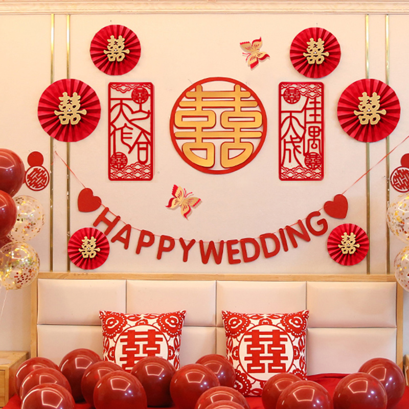 Century-old Alloy Fan Flower Wedding House Decoration Suit Centuries-old Wedding House Decoration Suit Wedding House Decoration Suit (Chinese Style) New Round Bridal Wedding House Decoration Suit Happy Marriage House Decoration Suit Newlyweds