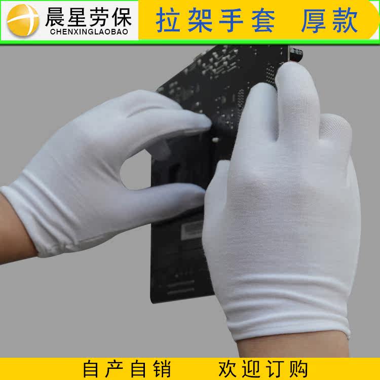 Pull-frame elastic white pure cotton gloves Job protection gloves Industrial gloves