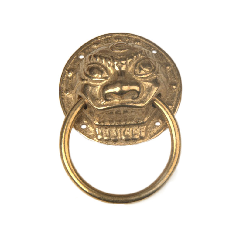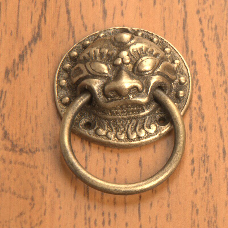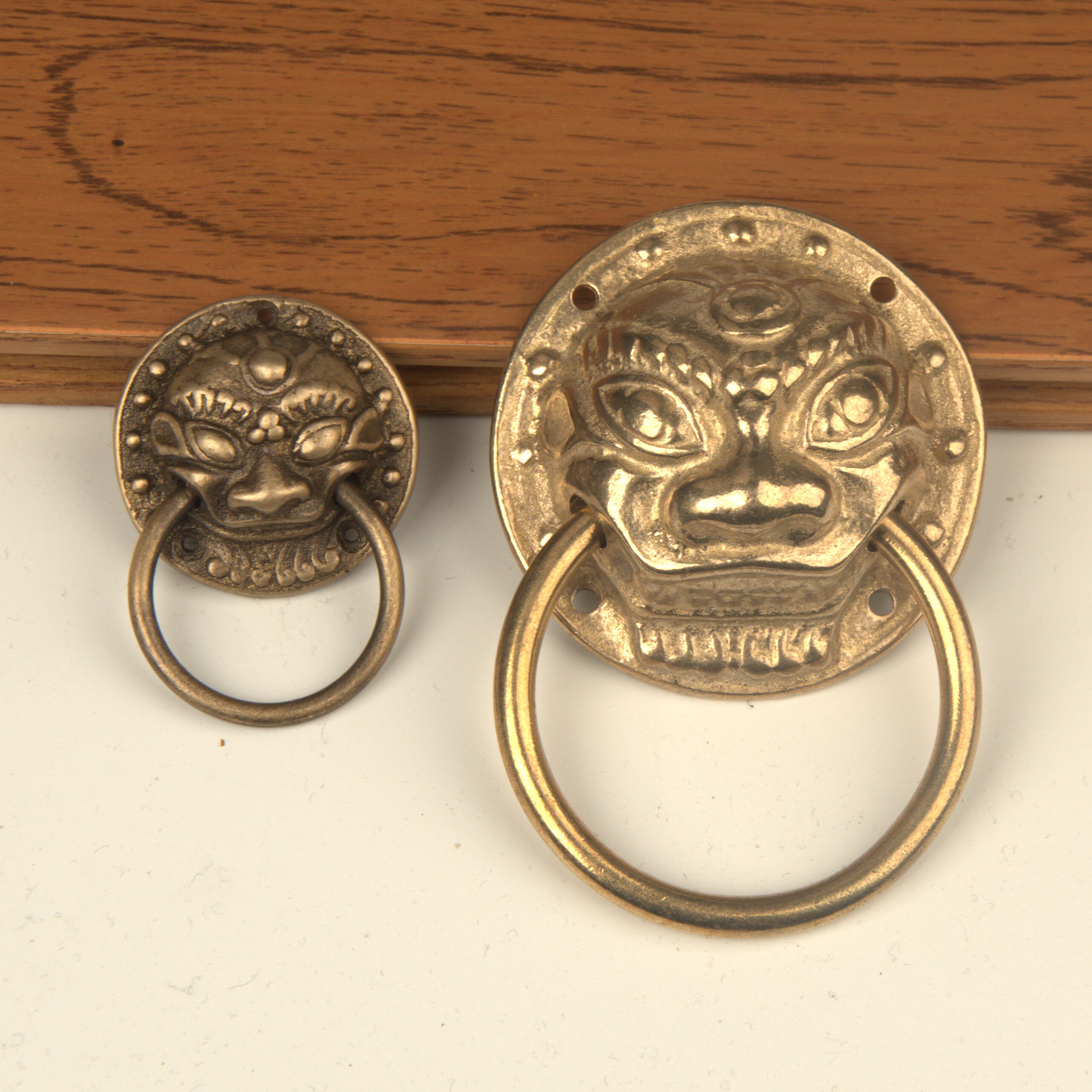 The ancient pure copper lion-headed beast head handle wooden door shop head-free punch teapot decoration casting small hand- and bright-dressed