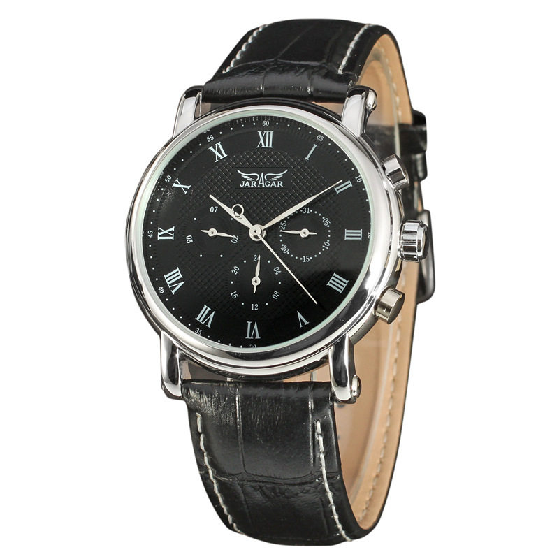 JARGAR circular meter disc triple eye six-pin Roman numerals double scale foreign trade mechanical belt watches B298