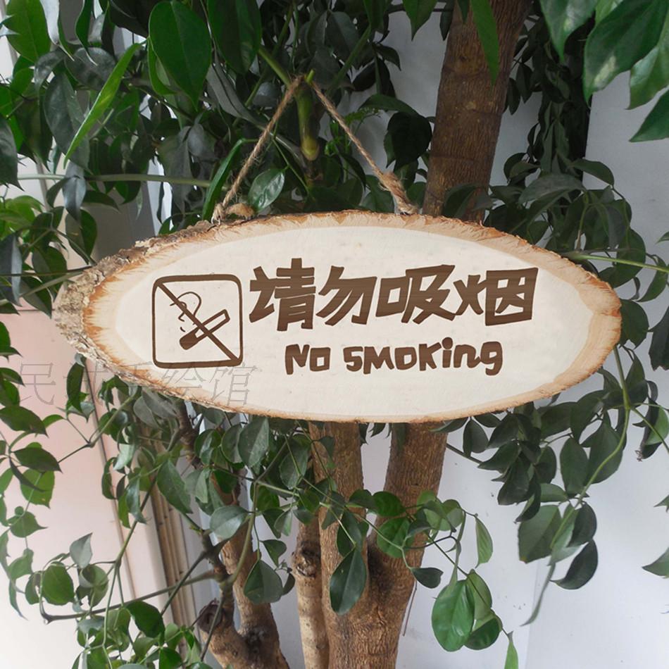 Smoke Free Zone Card Engraving Wood Plate Original Eco belt bark Listing to ban smoking listing Warning Door Signs