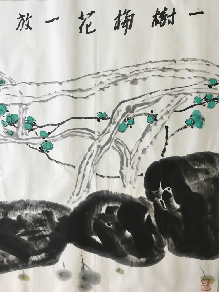 Famous calligraphy and painting collection Yuan Wu, a flower of plum blossoms, a famous handwriting calligraphy and calligraphy, and a real and old painting and a hot sell