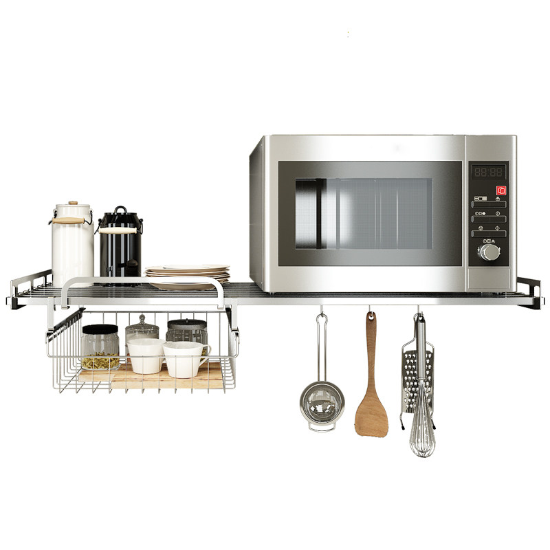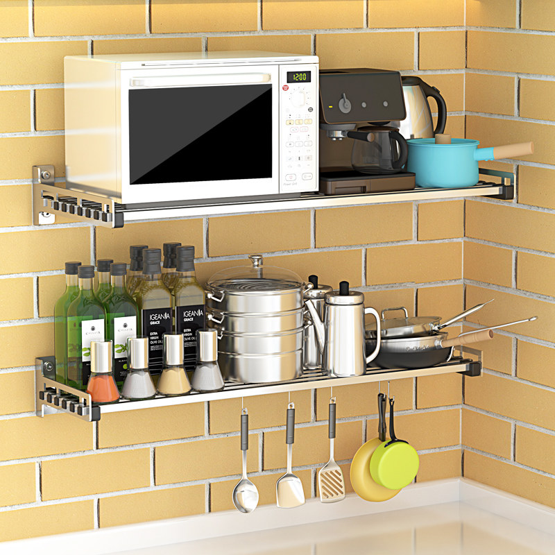 Microwave oven rack 304 stainless steel kitchen storage rack wall-mounted kitchenware storage rack oven shelf shelf bracket