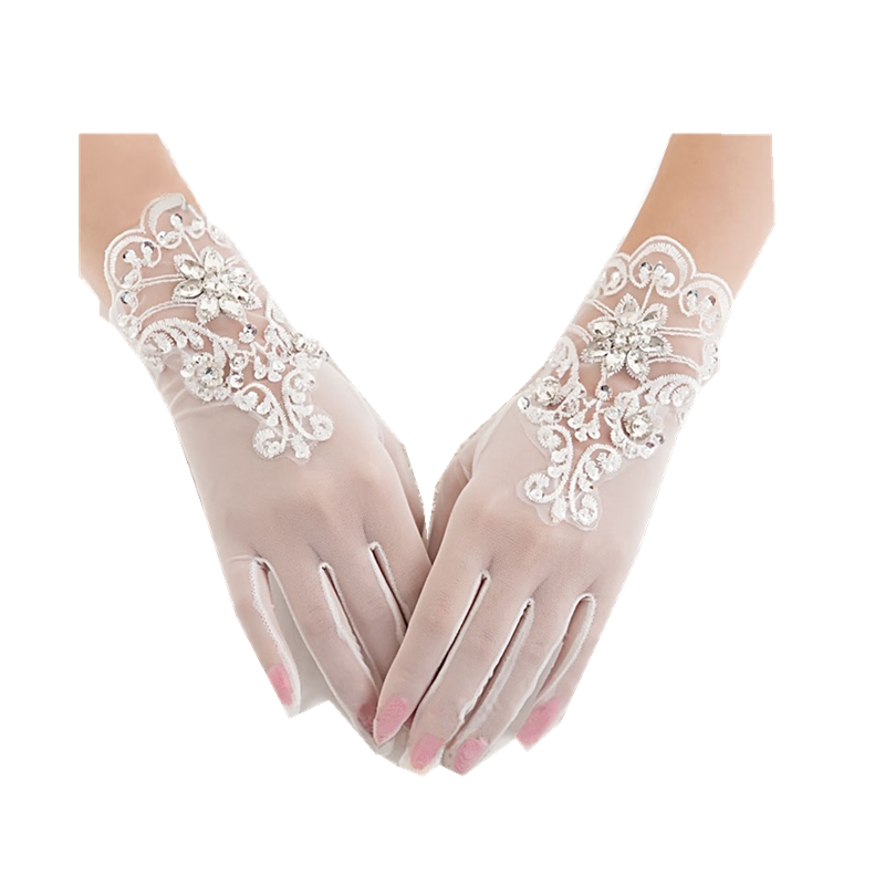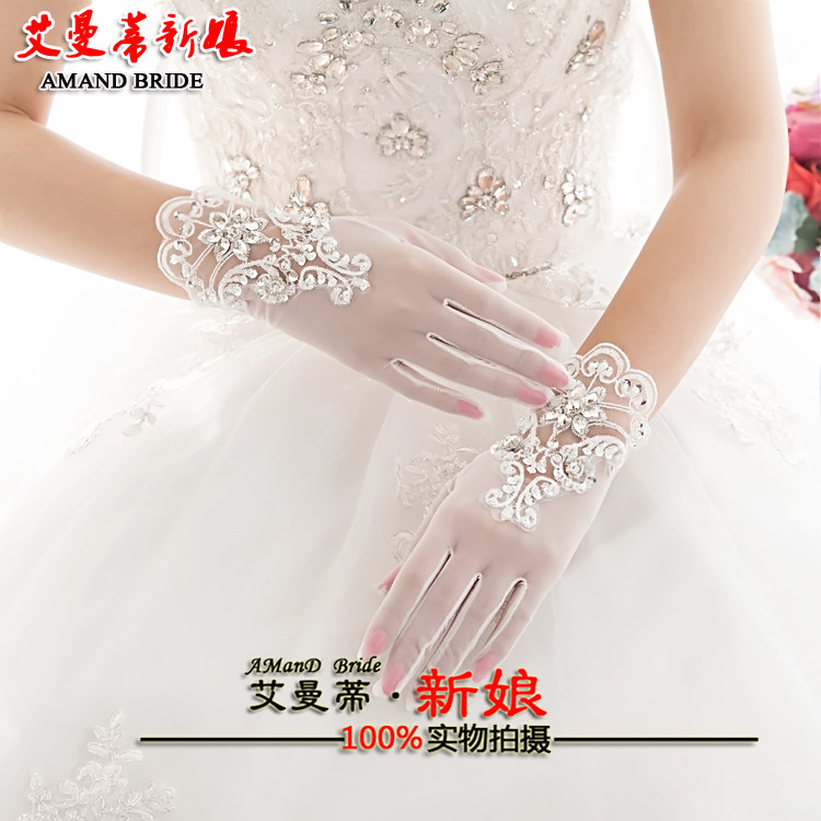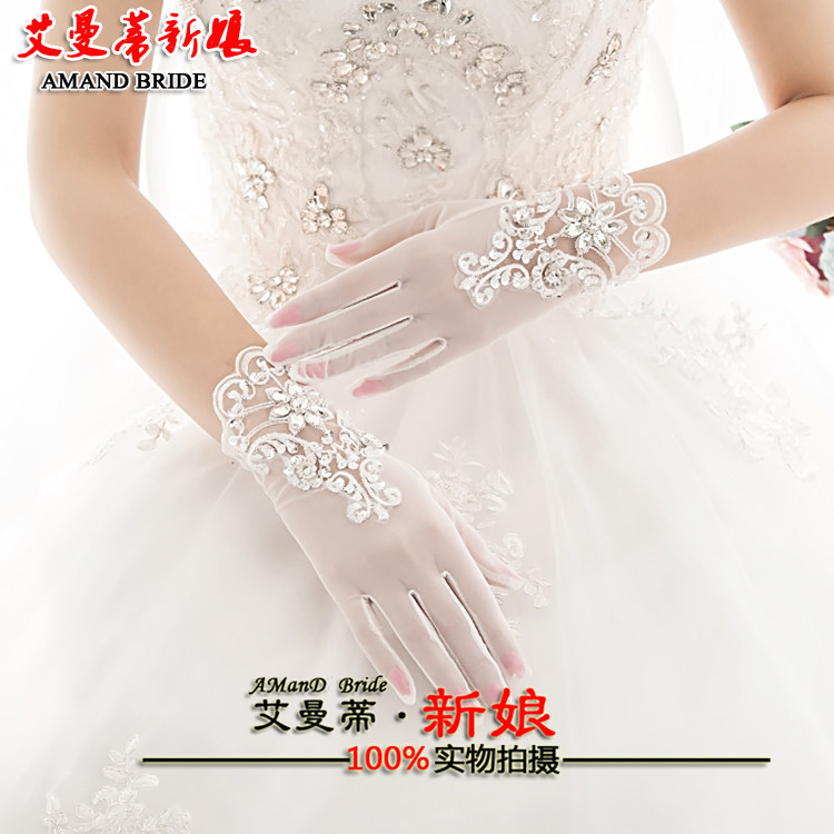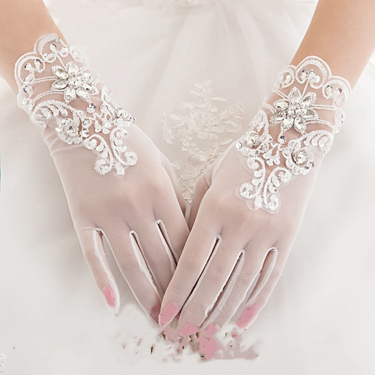Bridal lace rhinestone gloves Short finger gloves Wedding wedding gloves Accessories Spring and summer thin mesh gloves