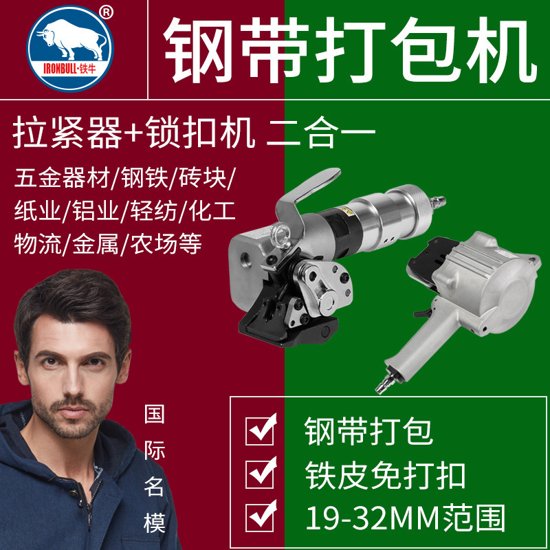 Iron Bull Pneumatic Steel Belt Baler Iron Belt Strapping Machine Split Type Automatic Tin Baler Split Portable Locking Machine Rebar Tightening Tensioning Machine KZL32 19 25