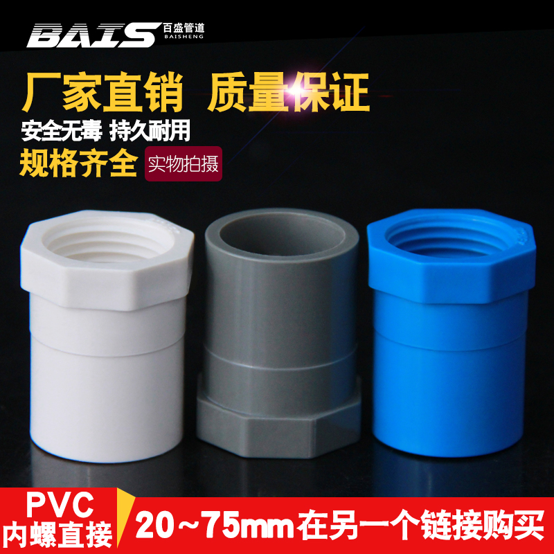 PVC inner screw direct water supply pipe straight thread thread joint 20 25 32 40 50 63 75 90 Blue