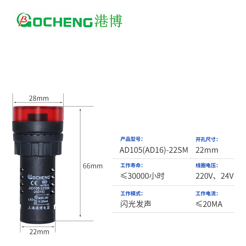 Hong Kong Bo AD105 AD16-22SM buzzer 220V sounder 24V sound and light flash electronic alarm 22MM