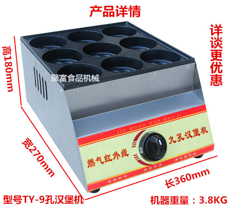 Commercial Stainless Steel Nine 9 Holes Gas Burger Machine American Egg Cake Machine Eggs Burger Stove