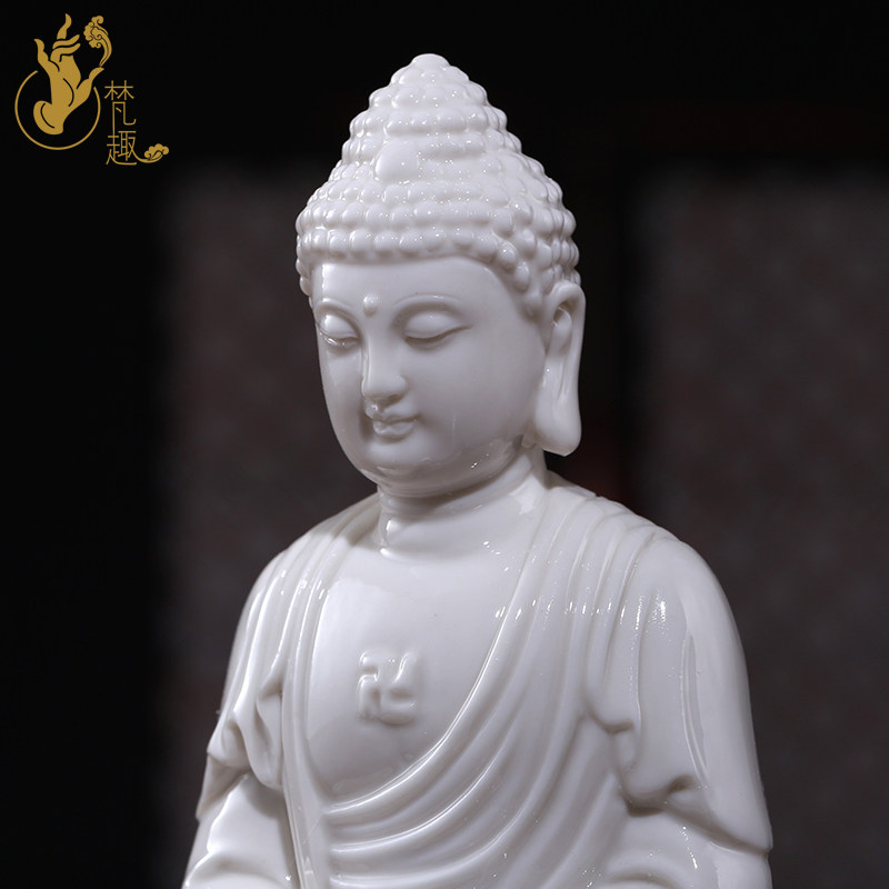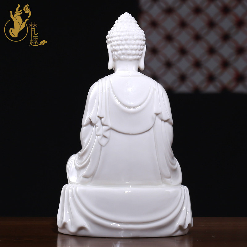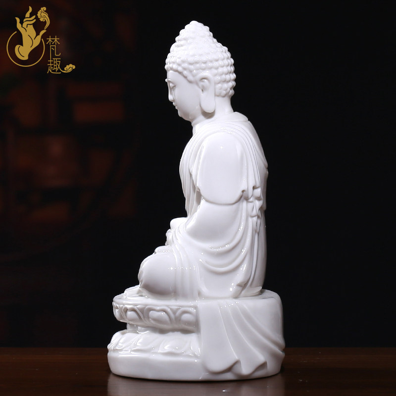 Fan Qu Dehua ceramic white porcelain trumpet sitting ancient lotus Shakyamuni Buddha 7 inch Rulai Buddha statue ornament