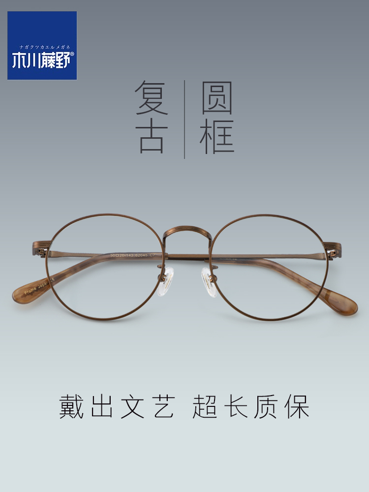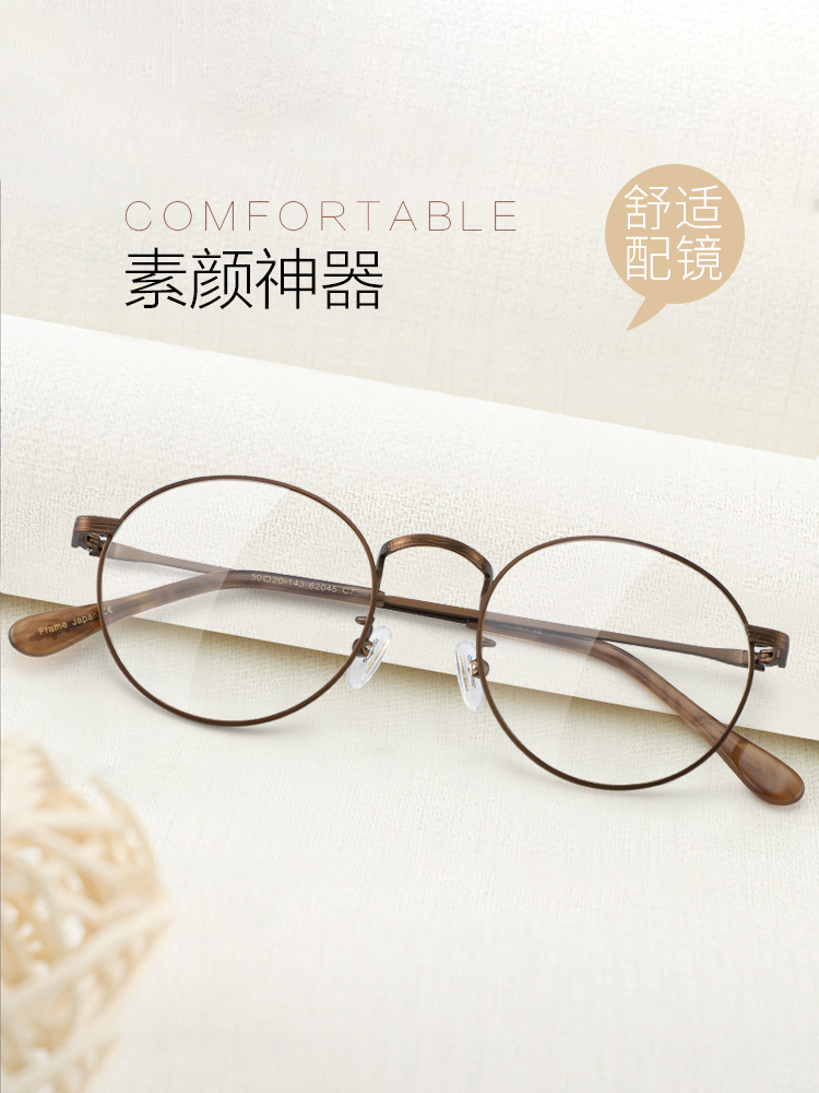 Spectacle frames can be equipped with degree lenses myopia glasses men's trendy retro art frame women's round big face without makeup