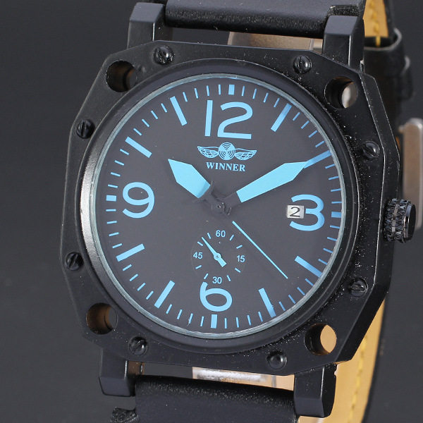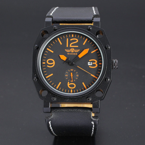 WINNER three-pin automatic minimalist scale with calendar false eye back overdraft men's leisure mechanical belt watches D67