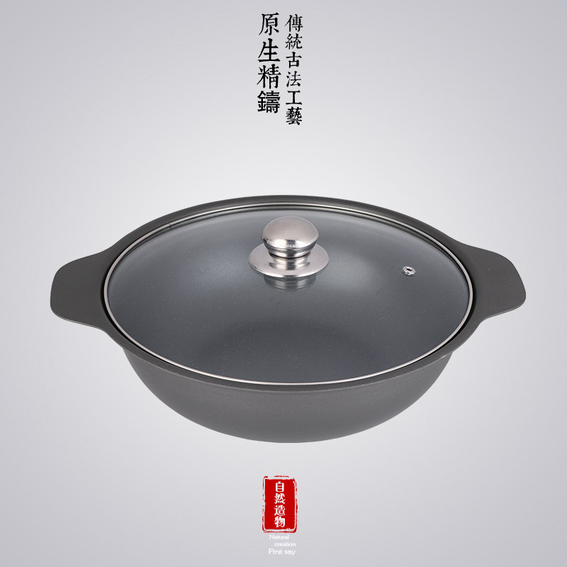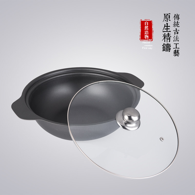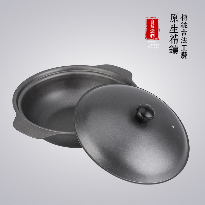 Deep gray gray black 16cm iron cooker (with iron cover) 18cm iron cooker (with iron cover) 20cm iron cooker (with iron cap)22cm iron cooker (with iron cap)24cm iron cooker (with iron cap)