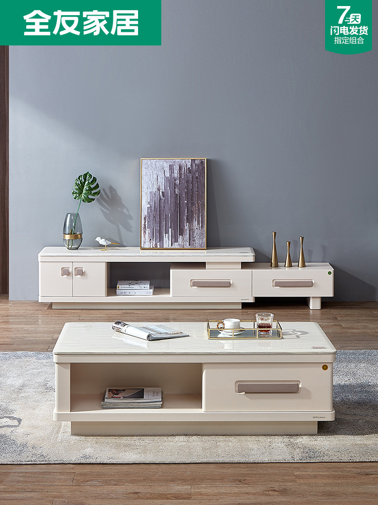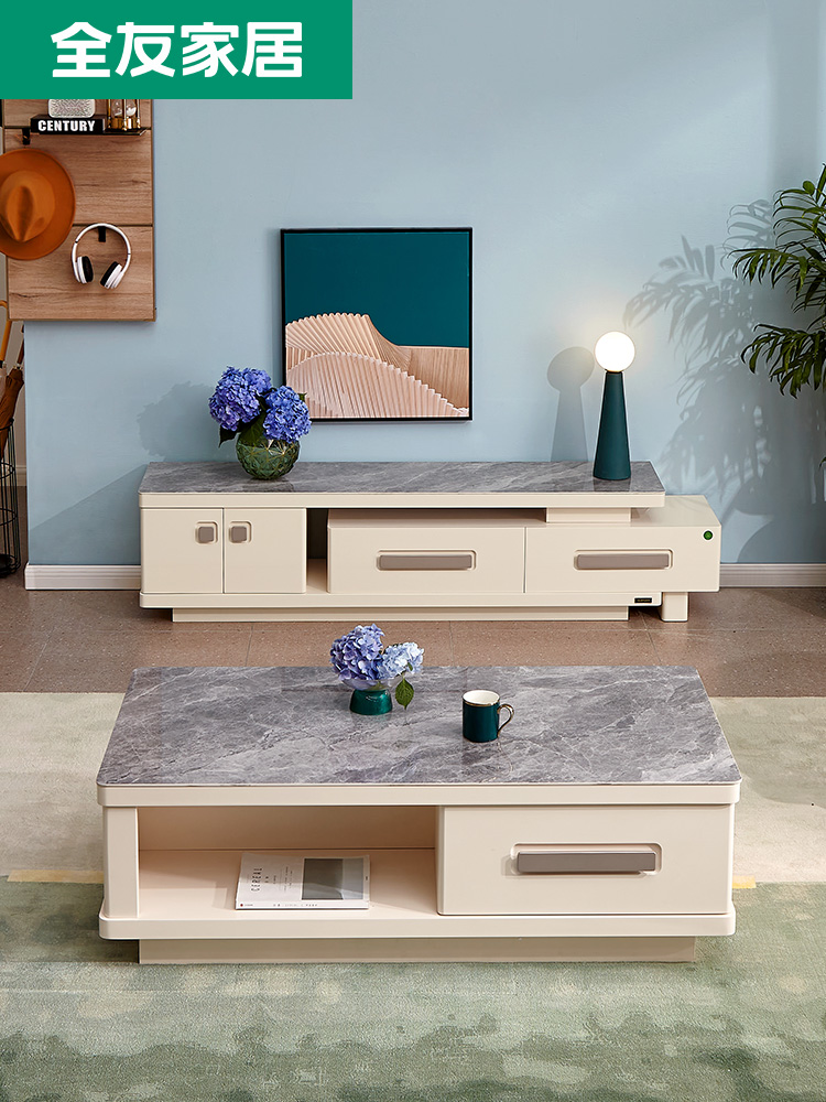 All friends furniture coffee table TV cabinet combination modern minimalist stone glass TV cabinet coffee table combination 36111