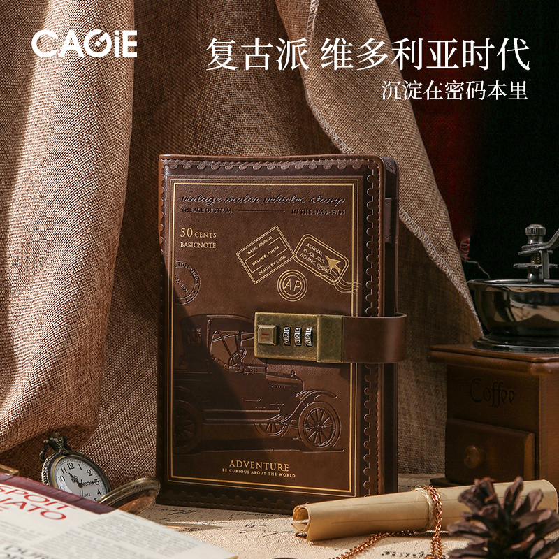 Kajie retro code book with lock diary creative hand account password notebook multi-function fingerprint simple notepad primary school student Magic Book Net red art exquisite stationery hand account book