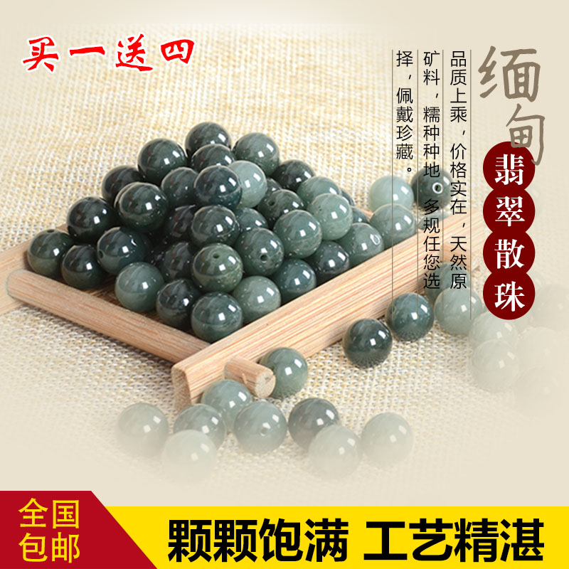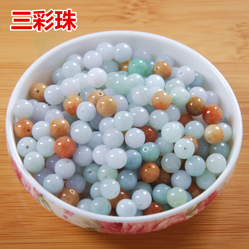 Jade scattered beads a cargo defect three-color oil green natural Burmese jade beads ice DIY hand necklace round beads