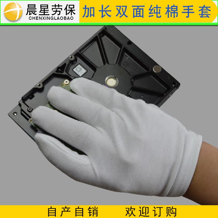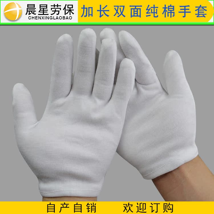 Lengthened double-sided pure cotton glove gift instrument Industrial cotton gloves Job gloves