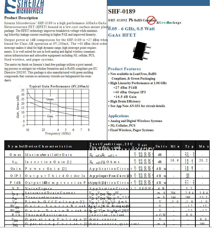 SHF-0189 SHF0189Z Screen Printing H1Z H1 SOT-89 0 05-6GHz 0 5W Amplifier