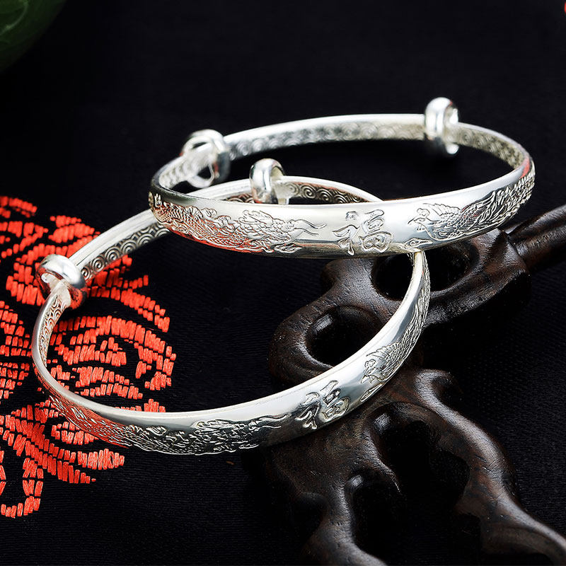 Fuwansheng baby silver bracelet 999 sterling silver auspicious blessing word children's bracelet set Long life lock silver lock full moon gift