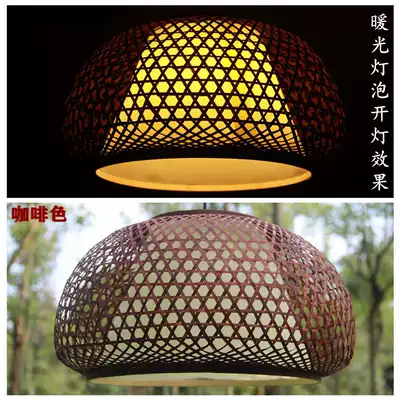 Chinese antique Zen pastoral simple Teahouse chandelier Hand-woven bamboo lantern Dining room personality creative lampshade