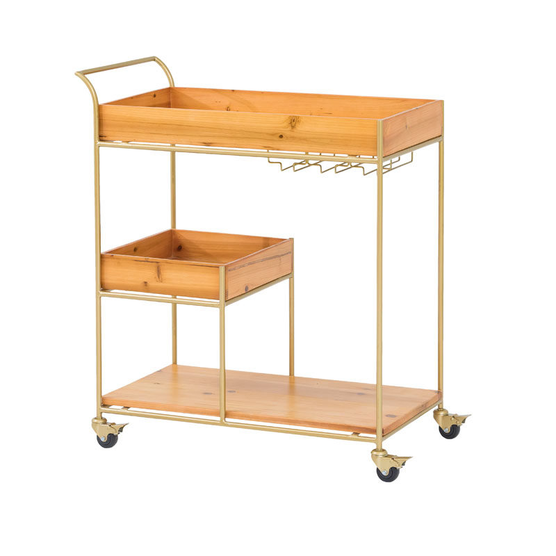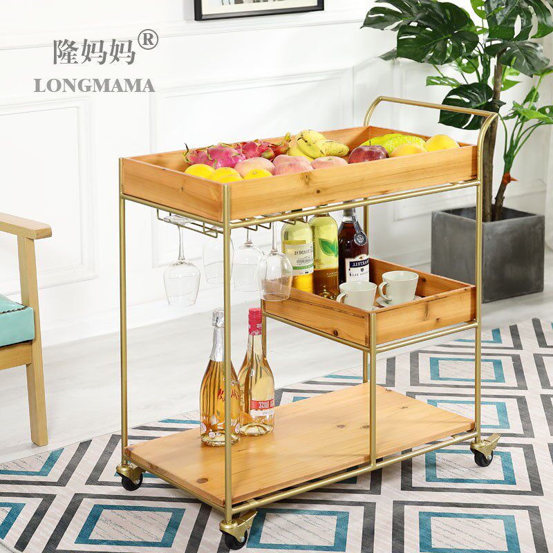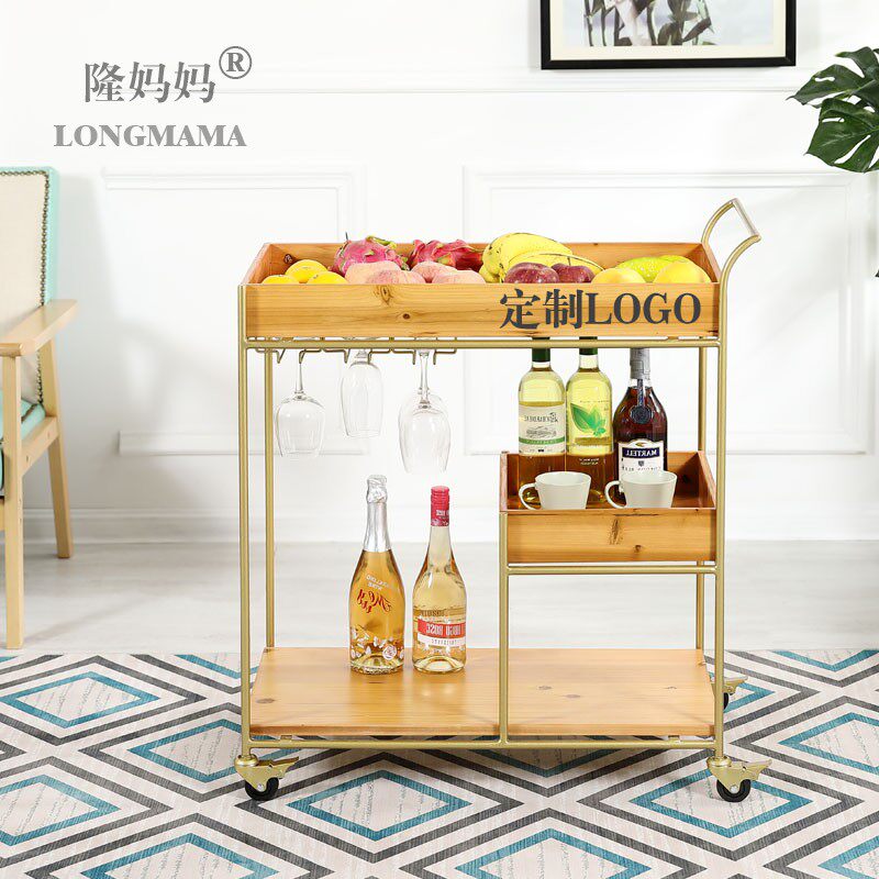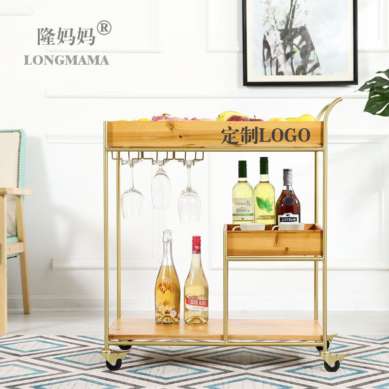 Wrought iron solid wood dining car Coffee shop Hotel wine cart Wine rack Bar club cart Plate collection car