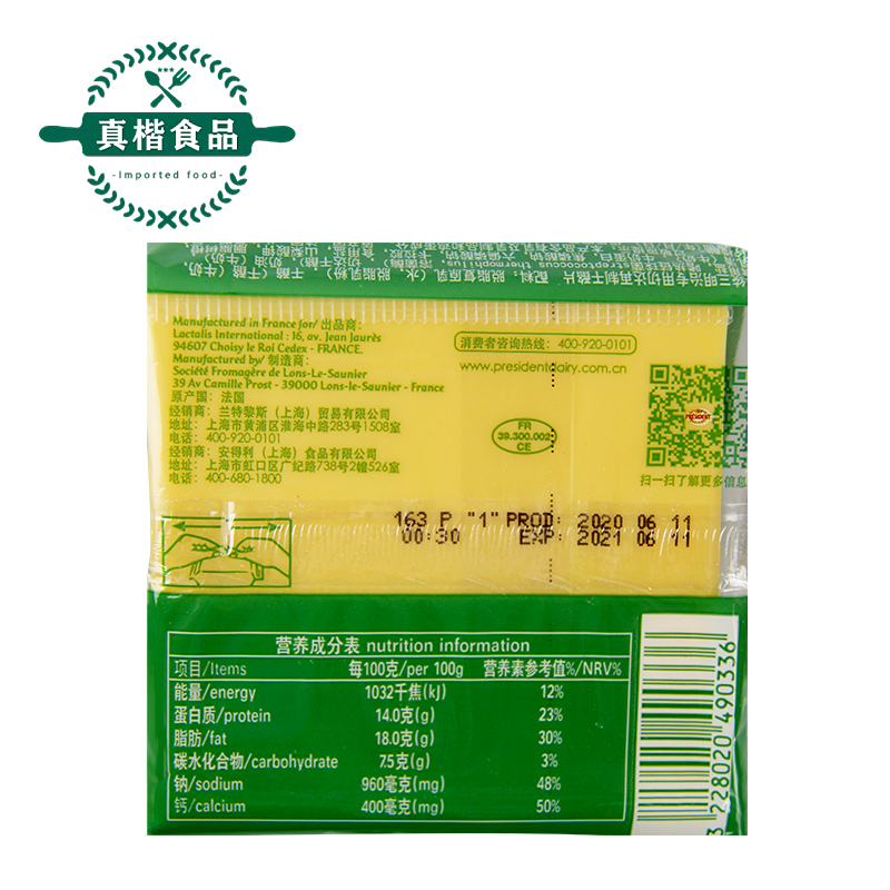 Presidential cheese slices 200g ready-to-eat sandwich cheese slices French imported bread breakfast cheese slices new goods