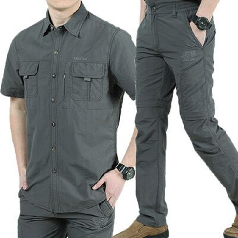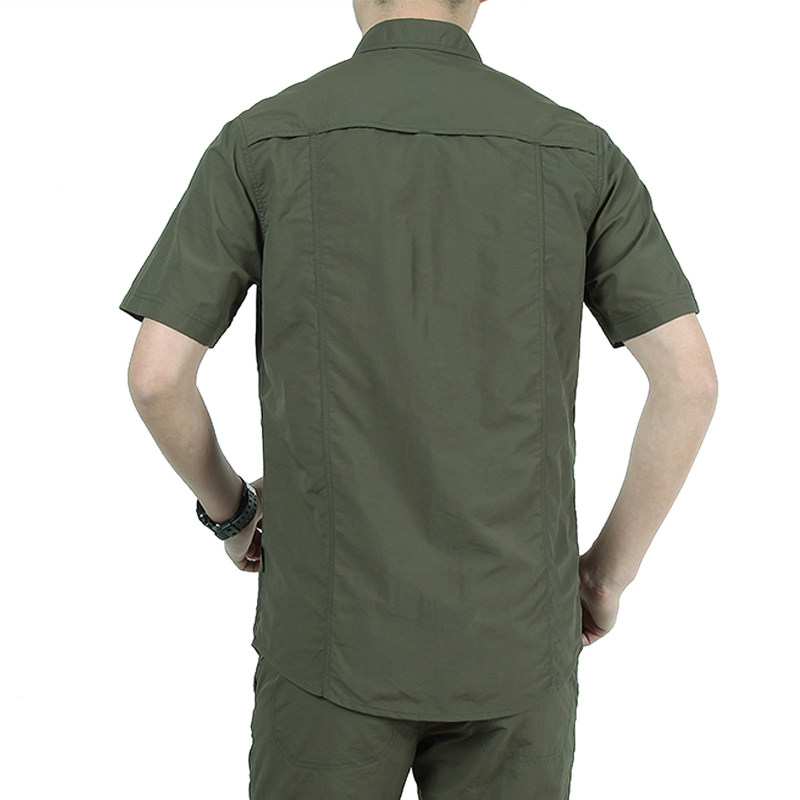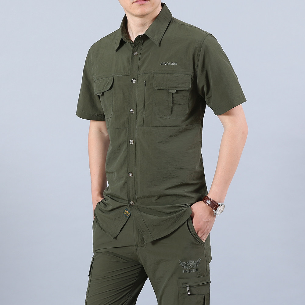 Quick dry short sleeve shirt male thin section outdoor Korean version Business casual shirt American speed dry free ironing multiple bag overalls