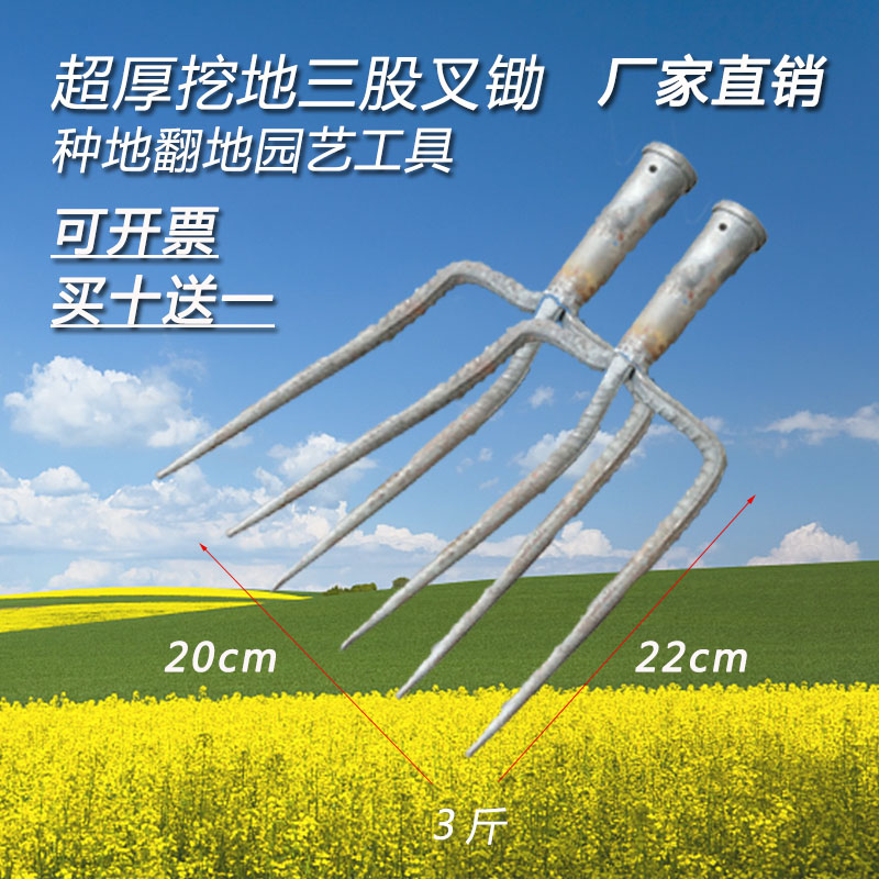 3-strand digging fork 4-strand ultra-thick one-piece steel fork Four-strand steel handle set of nine-tooth steel fork with handle digging fork 40#20CM Three-strand hollow fork 58*38 Four-strand hollow fork