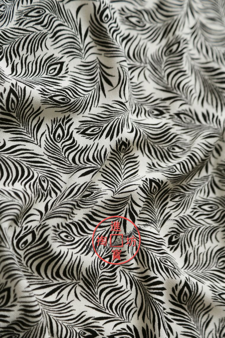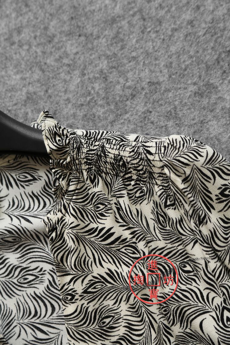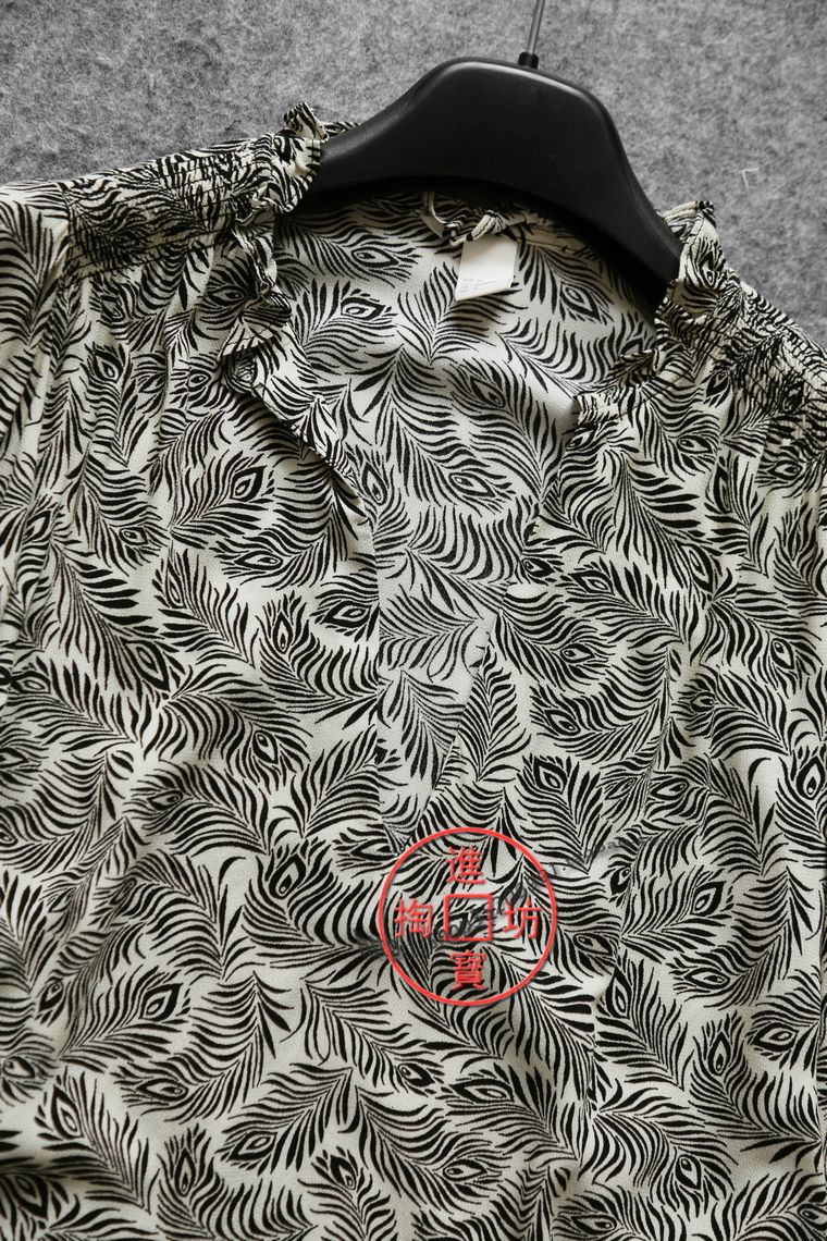 141B 0524 Small stand-up collar, feather pattern printing and dyeing nine-quarter sleeve pullover shirt