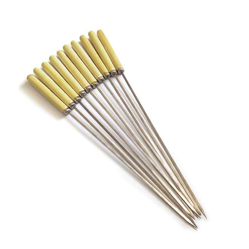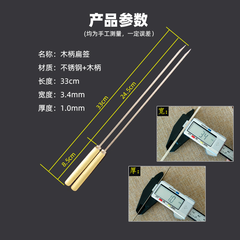 Stainless Steel Wood Handle Flat Sign Outdoor Barbecue Needle Goat Meat String Accessories Tool Supplies Roast Sign Steel Sign Iron Sign