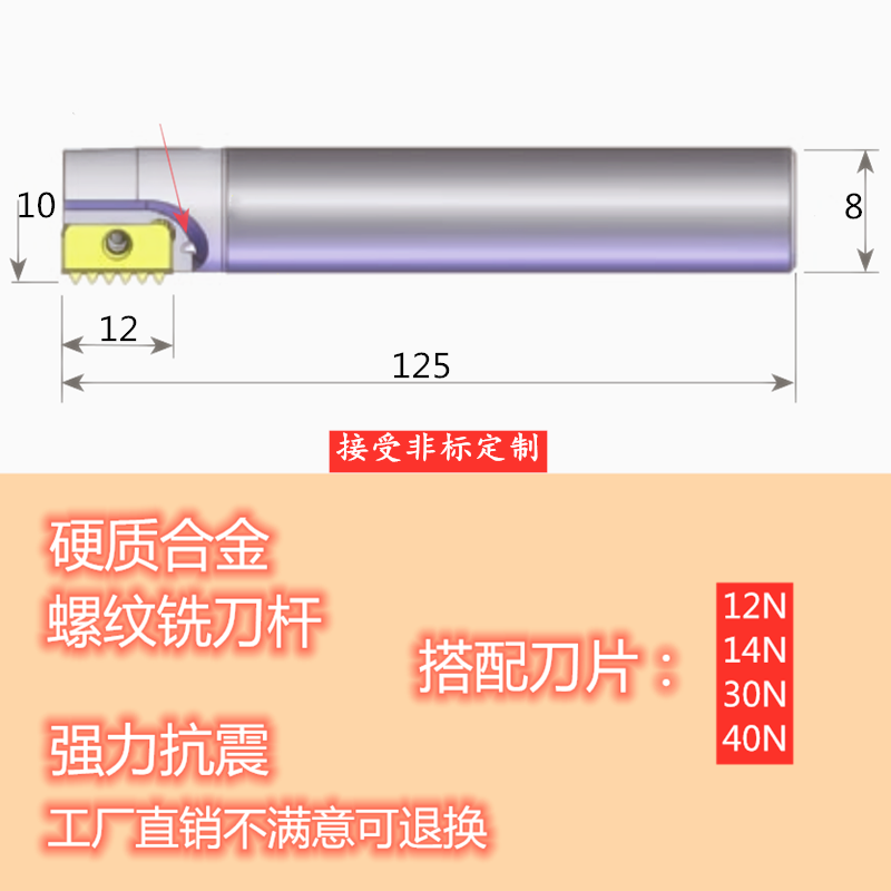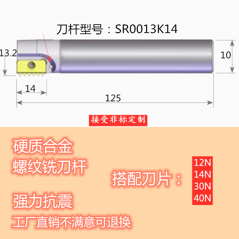 SR0010K12C with threaded milling inserts 12SR0013K14CSR0015M14CSR0017N14C with threaded milling inserts 14SR0021K21CSR0021M21CSR0021R21C with threaded milling inserts 21SR0027S30C with threaded milling inserts 30 density tungsten alloy thread milling rod strong anti-vibration thread rod