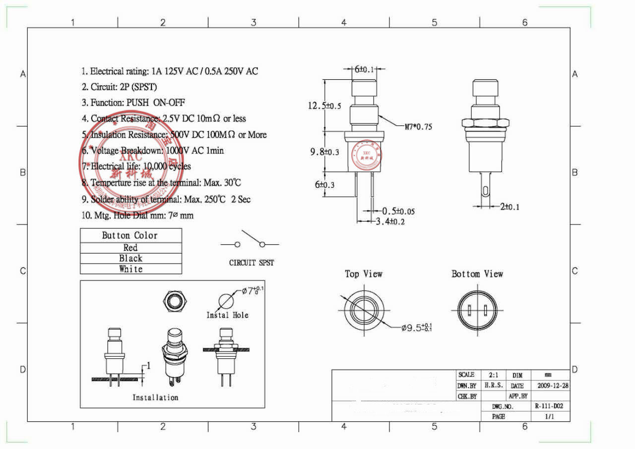 Imported ultra-small self-locking metal push button switch mounting hole 7MM 1A 125VAV 0 5A 250VAC