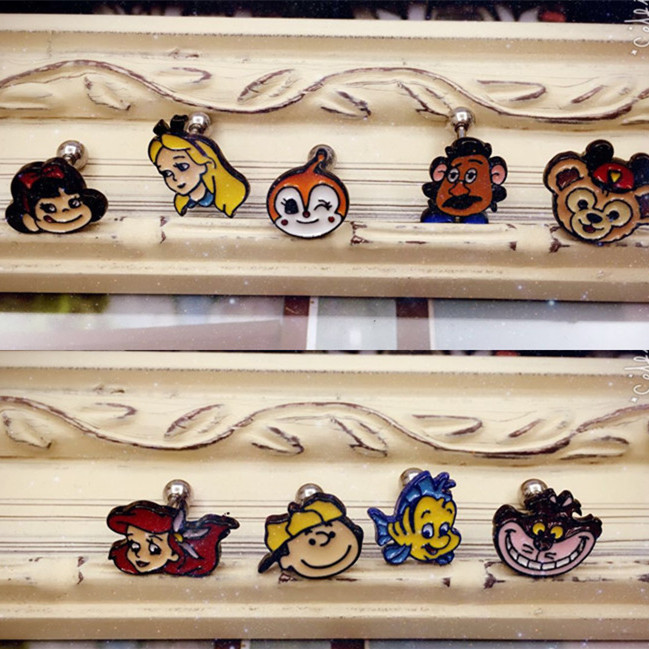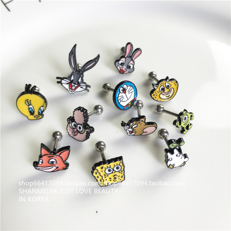 Korean cartoon Crayon Shin Shin Snoopy rabbit love Mickey Mouse steel ball buckle single stud earrings