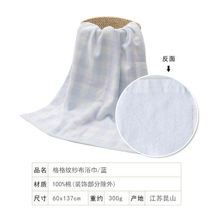 TAYOHYA diverse house plaid gauze cotton bath towel pure cotton household bath absorbent body wrap bathroom towel