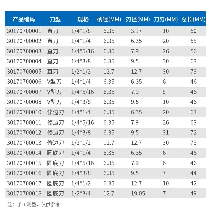Straight knife 1 4X1 8 straight knife 1 4X1 4 straight knife 1 4X5 16 straight knife 1 4X3 8 straight knife 1 2X1 2V knife 1 4X1 4V knife 1