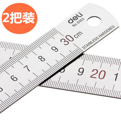 Deli thickened steel ruler 15 20 30 50cm scale scale Metal long grid scale Drawing steel metal ruler