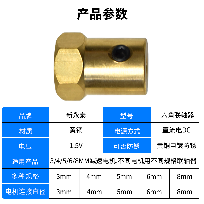 Xinyongtai intelligent small wheel short shaft hexagonal coupling Copper wire coupling 3MM5MM4MM6MM8M reducer