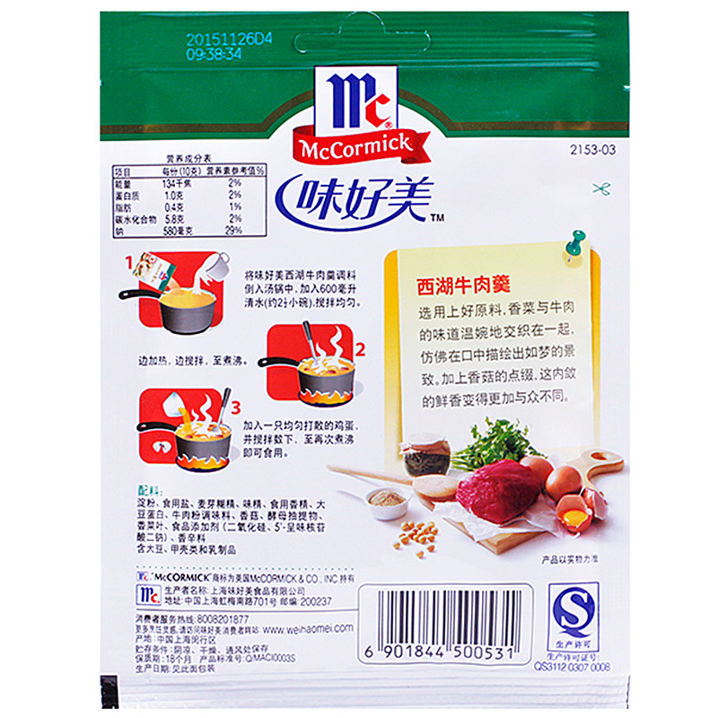 Wei Hao Mei West Lake Beef soup 35g Convenient instant soup Seasoning package Beautiful soup brewing ready-to-eat