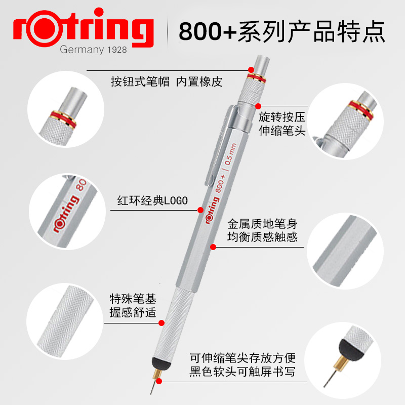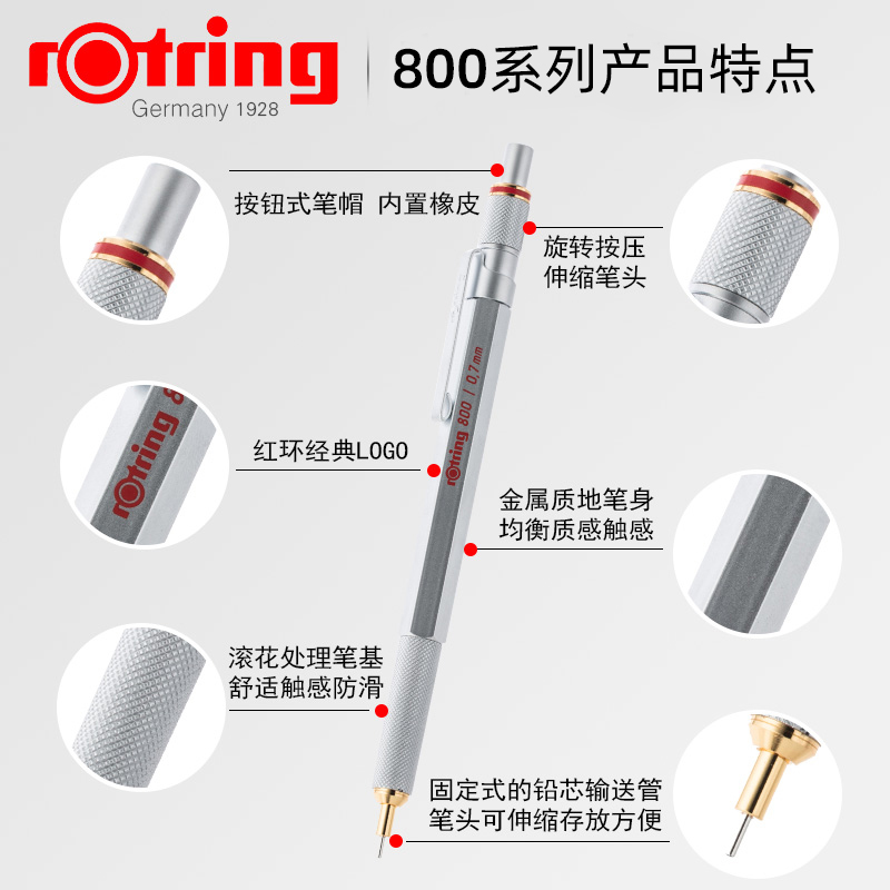 German Rotring red ring 800 drawing mechanical pencil metal pen body drawing activity pencil 0 5 0 7mm