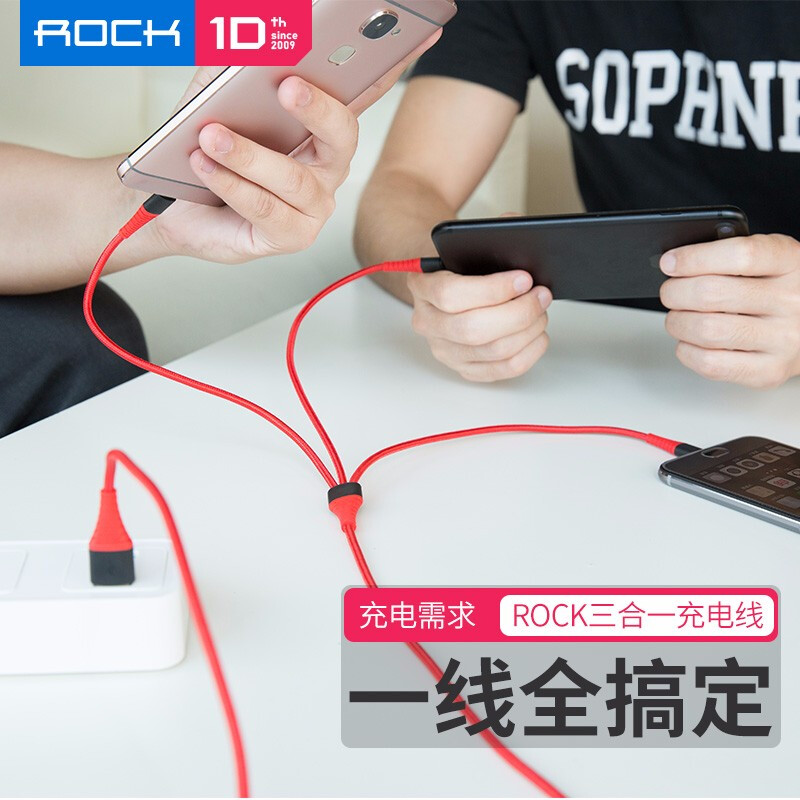 ROCK Locke three-in-one charge line one drag triple phone Fast charge Apple typec Android Three-in-one vehicle punch line lengthened first-line bulls apply the iPad Huawei iPhone13