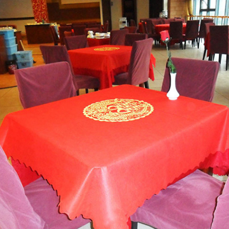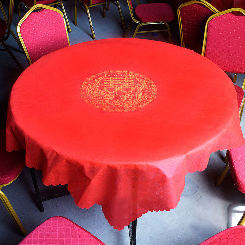 Unwoven Cloth Table Cloth Wedding Table Cloth Dragon Phoenix Happiness Red Disposable Xi-Character Table Cloth Wedding Wine Mat Tabletop Festive Items